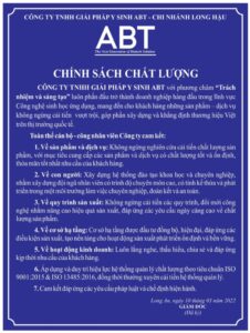 Do xuất phát từ Công ty TNHH Giải pháp Y Sinh ABT nên chính sách chất lượng của OligoX tuân theo chính sách chất lượng chúng của ABT.