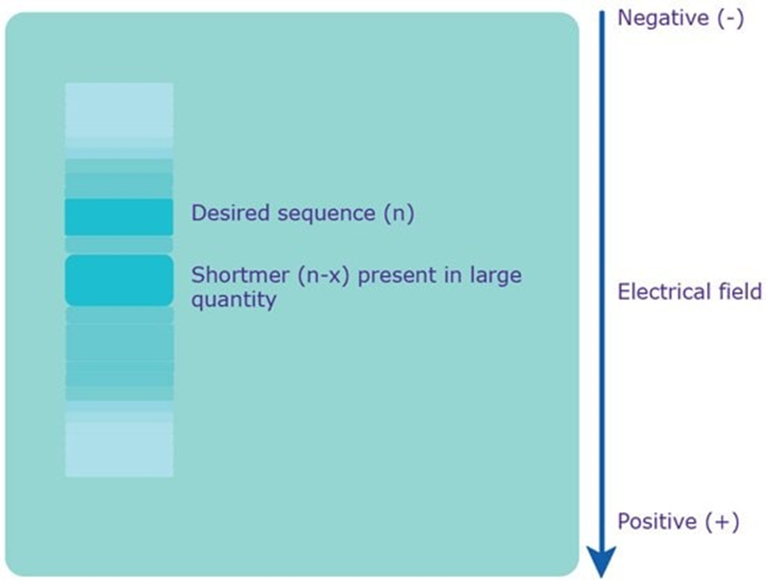 Điện di gel polyacrylamide (PAGE) sử dụng môi trường biến tính cụ thể là môi trường có chứa URE (URE PAGE) để phân các oligonucleotide dựa trên trọng lượng phân tử thay vì điện tích. Trong điều kiện thích hợp, các oligonucleotide khác nhau bởi 1 nucleotide duy nhất có thể được phân tách. Khả năng phân tách kích thước hiệu quả này thường mang lại mức độ tinh khiết cao nhất có thể đạt được trong bất kỳ phương pháp tinh sạch nào hiện có. Hiệu suất thu hồi mục tiêu từ kỹ thuật PAGE thường thấp hơn so với các phương pháp khác do khả năng loại bỏ trình tự lỗi và cũng như quy trình phức tạp để phân tách được các oligonucleotide mục tiêu. PAGE thường được khuyến nghị khi cần các sản phẩm có độ tinh khiết cao để ứng dụng trong các thí nghiệm yêu cầu độ chính xác cao và đối với các trình tự có chiều dài lớn hơn ≥ 60 bazơ. Các sản phẩm sau khi tinh sạch bằng PAGE thường có độ tinh khiết cao >95%.